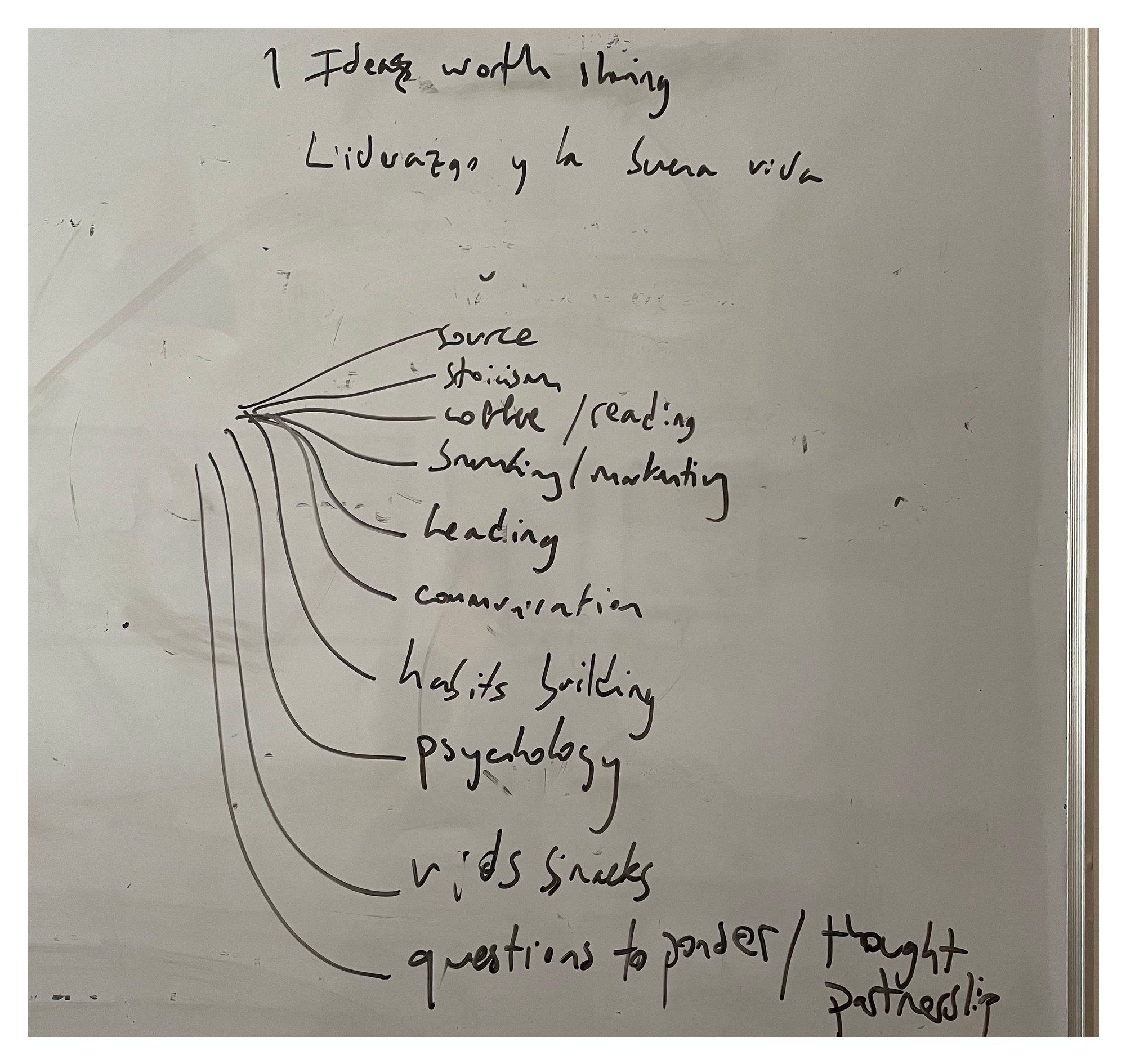 El otro día me desvelé. Se me dio por perseguir una idea, y no hubo vuelta atrás. Eran las 5 de la mañana, y no podía dejar de pensar en este blog. Me levanté de la cama, fui a la oficina, y en un pizarrón listé tópicos sobre los cuales escribir. Hasta ese momento, el blog no era más que una idea, libre de riesgos. Aún así, sentía una energía difícil de explicar.